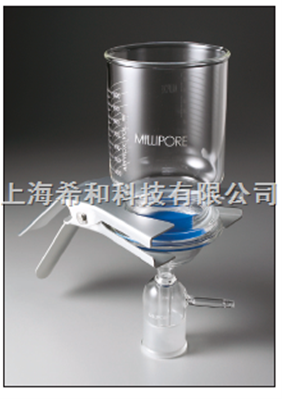 真空过滤水溶液、有机溶液或腐蚀液体,进行颗粒污染分析。 同时建议对 HPLC 溶剂进行过滤。 请与 Millipore 了解过滤有机溶液时可使用的滤膜。 与液体接触的硼硅酸盐玻璃部件,其表面用磨砂玻璃密封。